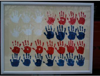 Every student in the North Campus Second Grade Class participated in the American Flag Hand Print Painting. It is framed and measures 36.5" x 28.5". Includes a Certificate of Authenticity signed by every student in the North Campus Second Grade Class.