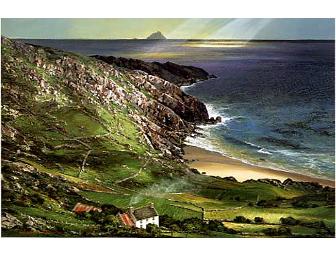 Edmund Sullivan beautifully captures the last scene many Irish folks have seen leaving Ireland on their way to a new home in America. It is the last rocky-green memory thousands have of this beautiful isle. Here, most powerfully, Sullivan's genius for seeing Ireland at its best comes through. This masterpiece is presented in a beautiful gold frame and is individually numbered as part of a limited edition printing.