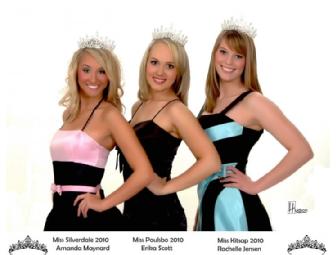 Spend the afternoon with Miss Poulsbo 2010, Erika Scott, Miss Kitsap 2010, Rachelle Jensen and Miss Silverdale 2010, Amanda Maynard at the Dancing Brush in downtown Poulsbo. Good for up to five guests on a mutually agreed upon day. The ladies will bring a sampler plate of delicious cupcakes from Bella Bella Cupcakes to eat while you paint a piece of pottery. Each guest will recieve an autographed picture from each of the titleholders. A perfect way to celebrate a birthday or special occasion.