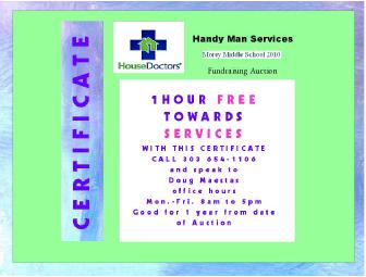 Gift certificate for one hour of handyman services. Give your husband a break and let House Doctors get a few of your "honey do's" scratched off your list.