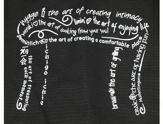 The soft, light weight scarf is made with fair labor from 100% certified organic cotton, by a family-owned-and-operated knitter in Costa Rica. The water-based printing was done in Michigan. The design shows various MotherTongues words from around the world, together with sayings describing community building and mindful living.
