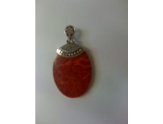 Red sponge coral Pendant set in silver approx 1 1/4 in from Austrailia