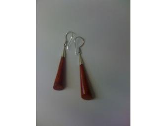 | Red sponge coral earrings set in silver approx 2 1/2 in from Australia |