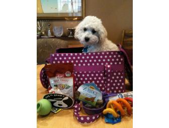 This beautiful polka dot small animal carrier comes full of fun pet treats!