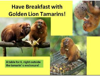 You and 5 guests will get to enjoy breakfast right outside the Golden Lion Tamarin exhibit at the National Zoo's Small Mammal House. Breakfast package includes a demonstration of the tamarins' diets, breakfast with a GLT expert, and non-stop entertainment from the GLT family as they enjoy their morning meal.