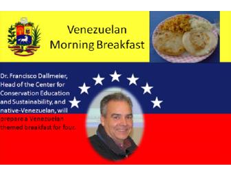 Enjoy a very special breakfast for four with Dr. Francisco Dallmeier, Head of the Center for Conservation Education and Sustainability. Pick Francisco''s brain about the history of the Zoo's international efforts in monitoring and assessing biodiversity during his more than two decades of involvement, current initiatives in Peru and Gabon, or Venezuelan wildlife. Francisco will prepare the traditional Venezuelan breakfast himself!