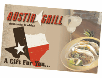 Two $25 gift cards to enjoy a delicious Tex-Mex meal at Austin Grill in Downtown D.C. At Austin Grill, you'll find the same food that generations of Texans have come to expect, with an Austin twist: Specialty margaritas with real lime, no store-bought mixes. Hand rolled enchiladas. Fifteen different homemade salsas, sauces, and dressings. Fresh-off-the-farm ingredients. And, of course, our authentic charbroiled chicken wings.