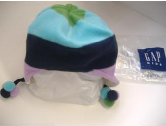 Child's Soft Fleece Hat from the Gap Store: Lavender/blue/light blue with pom-pom. Size s/m