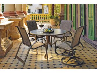 Make your patio a great party location with this Outdoor Living Set - Primera Collection - an oval table with six chairs: 2 swivel rockers and 4 king chairs.