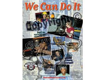 The We Can Do It poster (laminated) from Her Own Words highlights nine women in nontraditional careers. Useful for inspiring girls and women to consider nontraditional coursework and careers. Vivid images of a wide variety of women at work.
