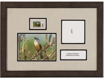 Kirtland's Warbler's are among the most endangered North American songbirds. They live only in some jack pine forests in Michigan and winter in the Bahamas. This framed photo, footprint, and limited-editioncommemorative stamp will let you celebrate the efforts of National Zoo researchers to understand the birds' needs and preserve the species. Dimensions: 19” wide x 14” tall.