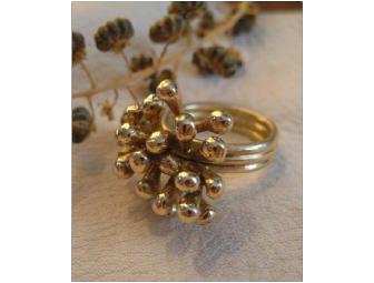 A beautiful sculptural and organic cocktail ring made of polished brass in 14k gold color by artist Blanca Monrós Gómez. Ring is size 6.