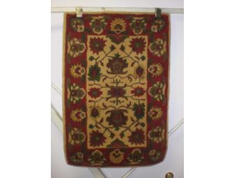 Hand-woven woolen rugs have traditionally been used in both nomadic and settled Tibetan households -- whether in tents, houses or outdoors -- as well as in temples and monasteries. They have served as floor coverings, wall hangings, curtains, furniture coverings and even saddle blankets. This rug was made in Nepal by Tibetan refugee communities.
