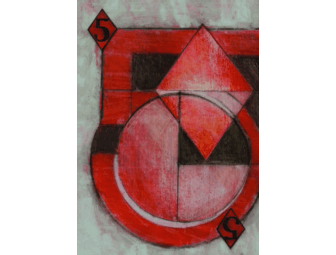 You are bidding on the Five of Diamonds, a 16 x 12 inch mixed media on paper painting by Barbara Rawls. This work has an estimated value of $145.