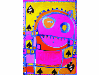 You are bidding on the Five of Spades, a 6.5 x 9 inch acrylic painting by Jenn Rawling. This work has an estimated value of $159. Proceeds from the sale of this piece will benefit Bark. Bark is an organization whose mission it is to transform Mt. Hood National Forest into a place where natural processes prevail, where wildlife thrives and where local communities have a social, cultural, and economic investment in its restoration and preservation. Jenn Rawling has been working as a creative artist in Portland Oregon since 1998. Her work theses days includes brightly expressed abstracts that are inspired by natural processes and land forms. She has been busy as of late writing music and singing her songs. For more information about Jenn Rawling, you can visitwww.myspace.com/jennrawling_art |