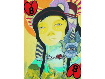 Please note that the description above was submitted by the artist. Also note that the image depicted with the listing is the image used in the Portland Project Deck ... which may be slightly different from the original artwork you are bidding on. The original artwork also may have had additional aspects or features digitally added to prepare it for inclusion in the deck. In some listings (but not all) we have mentioned differences between the card image and the original artwork, but in all cases you take final responsibility to be comfortable with the piece of art you are bidding on. If you have any questions about the difference between the image and the original piece, we encourage you to see the actual piece of art in person before you bid (they are all even more incredible live). In all cases the artwork is ready to hang but the pieces vary in terms of framing, attached hardware, etc. To find out where you can view the actual artwork, visit www.facebook.com/artinhandpdx or view the home page of the auction where we have all the showings listed. If you are the winning bidder we will expect you to make arrangements to have your art picked up either between 9-10pm at the closing reception Saturday evening May 22 or over the following couple of days at Splendorporium (3421 SE 21st Ave) between 11am and 5pm. If you prefer the artwork to be shipped, expect to pay actual packing and shipping costs (which will vary for each item depending the size, framing, etc.) plus a $25 handling fee. Note that this could get expensive, so we encourage you to make arrangements to have it picked up locally. Note that we will not pre-calculate packing and shipping. Although the auction requires you to register a credit card to bid, we will NOT automatically bill your card if you are a winning bidder, as we would prefer to collect your payment by check or cash when you pick up your artwork. You will receive notice from us if you are the winning bidder with your options.