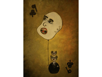 You are bidding on the Nine of Clubs, an 8.5 inch by 11.5 inch oil on canvas-paper painting by John Kaczanowski.