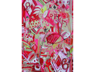 You are bidding on the Nine of Diamonds, a 18 inch by 13 inch acrylic on wood painting by Jennifer Mercede.