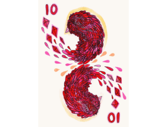 You are bidding on the Ten of Diamonds, a 8.5 inch by 11 inch ink and watercolor on paper by Holly Cappello. This work has an estimated value of $50.