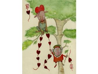 You are bidding on the Ten of Hearts, an 8.5 inch by 11 inch water color collage by Lisa Kaser.