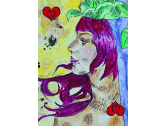 Noelle Scott is a multi-talented artist living in Portland OR. She primarily paints in acrylic and ink but also does projects in oil, clay, mixed media, costuming and other forms of crafty art. Inspiration comes from the range of roles women play in our social settings. The paintings often capture emotions from a female perspective. The Queen of Hearts is a self-portrait. You can view more of her work at http://www.noellescott.com.