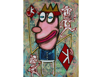 You are bidding on the King of Diamonds, a 48 inch by 30 inch acrylic and paper mixed media painting by Gary Hirsch. This work has an estimated value of $650.