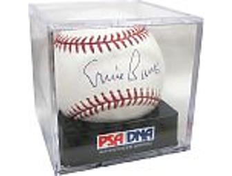Autographed baseball by Hall of Famer Ernie Banks - includes clear display.