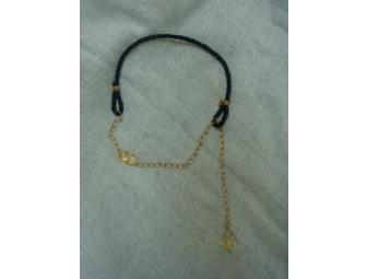 River Rox by Roxoxox llc. 2 Large Citrines & 14K GF on gold chain and black woven cord. Very Fabulous. Very Variable. Wear Very Long or Wrapped. Let Stones hang down, or tie. Especially great for Open Backs - Let your stones hang done your back.