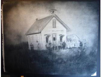 Kevin Llewellyn donates an 18x24 original sketch created with charcoal and spray paint on newsprint of how he envisions the Hollywood Schoolhouse in the mid-1900's.