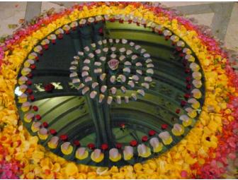 Chrysanne Stathacos, USA, 2006. The Rose Mandala Mirror (of three reflections for His Holiness the Dalai Lama) was created by Chrysanne Stathacos to celebrate His Holiness the Dalai Lama's visit to the University of Buffalo Law School in 2006. As part of a conference entitled Law, Buddhism and Social Change, organized by Professor Rebecca French at the University of Buffalo Law School Library, the artwork was placed at the center of a ring of legal scholars who conversed with the Dalai Lama. The intention was to create an intimate setting for dialogue. It was His Holiness's first visit to a U.S. law school conference and one of the few times he has spoken publicly about legal matters. The links to the conference are: http://www.buffalo.edu/ubreporter/archives/vol38/vol38n5/articles/HHDL_LawConf.html http://www.asianstudies.buffalo.edu/contrib/newsletter/documents/ASN12.2.pdf In November 2009, Stathacos presented the artwork for a second time in the rotunda of the Union Theological Seminary's Institute for Art, Religion & Social Justice in New York City for the exhibition Compassion, curated by A.A. Bronson. The exhibition was reviewed by The New York Times critic Holland Cotter, and The Rose Mandala Mirror (of three reflections for HHDL) was singled out by Mr. Cotter. Please see the link to the review below. http://www.nytimes.com/2010/01/01/arts/design/01lookahead2.html Here is the statement of purpose of the Compassion exhibition from the press release: In today's shifting political, economic, and ecological landscape, the need for compassion has never been greater compassion understood as mutual interdependence, knowledge of self and others, and concern for human flourishing. This kind of compassion requires seeking to know all aspects of human reality, being open to truths beyond our everyday experience and embedded in it. Artists often awaken compassion most profoundly. They inform our imaginations such that we can envision our interconnectedness in ways that mere didacticism cannot achieve. The Rose Mandala Mirror (of three reflections for HHDL) is a part of an ongoing Roses series by the artist. These works vary in size and are created by placing the petals of hundreds of roses in and above the circular mirrors. The intention is to invite the visitor to sit in contemplation around the work. The artist will go to the location to install the work. The work is professionally crated and can be shipped from NYC. Photographs of its previous installations are included.