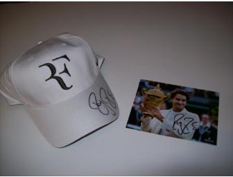 World #1 Tennis Player ? Roger Federer ? Autographed Hat and Autographed Photo with Wimbledon Trophy