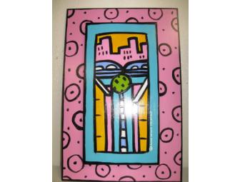 Contemporary Folk & Urban Pop Art with a touch of whimsy - A beautiful piece by this artist who is in Roscoe Village on Roscoe St! Acrylic on stacked wood. Titled "Vertical View"