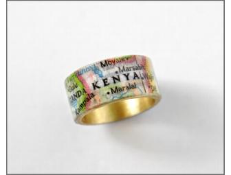Kenya Ring: Size 8.5, brass (will not discolor finger) and sealed in resin.