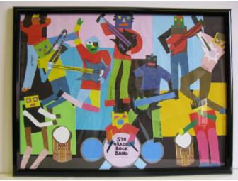 This collage was inspired by Pablo Picasso's cutist masterpiece "The Three Musicians". Each Fifth Grader made their own musician for the 5th Grade Rock Band. This collage is framed.