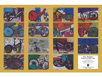 Be the proud owner of this one-of-a-kind collage. The Fourth Grade Students at the North Hills Campus studied positive and negative space by drawing a bike and coloring only the negative spaces. This collage is framed.