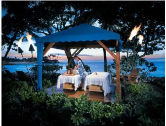 This package also includes the following Romance package: Orchid petals trailed from your door to the bed and arranged in a heart shape on the bed directly on the top sheet; slippers, and slipper mats positioned on the floor by the bed; bath robes positioned on the bed; a hot bath drawn with a selection of Made in Hawaii bath salts and bath gel; a candle positioned on the vanity sink; a candle placed in the tub; a CD player with a CD of romantic music; a bottle of Hawaiian made tropical body lotion positioned by the bed; champagne set up with 1 bottle of champagne in an ice bucket, two glasses and a selection of chocolate dipped strawberries. If you prefer, instead of the Romance package, you can have a $125 gift certificate to be redeemed at the award-winning Spa Without Walls, resort dining or other hotel amenities.