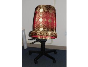Enjoy this original and beautiful Maroon and Gold Elegant Chair. The chair is adjustable for height and dressed for day to evening in sumptuous Asian-inspired fabric.