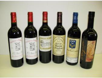This basket includes six (6) bottles of fabulous select wines: one (1) bottle of Chateau de Ferrand Saint-Emilion 1995, one (1) bottle of Chateau de Ferrand Saint-Emilion 1996, one (1) bottle of Chateau Gloria St. Julien 2000, one (1) bottle of Chateau Dauzac Margaux 2001, one (1) bottle of Chateauv Smith Havt Lafitte 1996 and one (1) bottle of Augusto 1997.