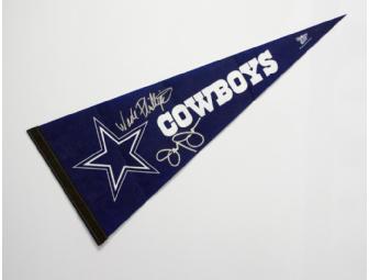 Dallas Cowboys pennant autographed by owner and general manager Jerry Jones and head coach Wade Phillips.