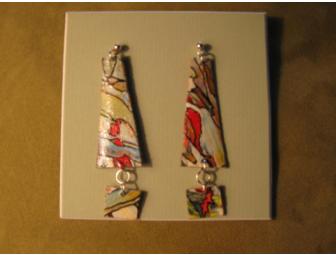 Hand crafted by local artist Marlene C. Feinholz, these earrings are individually painted on linen canvas, attached to a soft leather backing and assembled by the artist. No two pairs are alike.