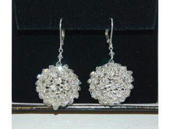 "Classic jewelry with a modern twist". 3/4 inch diameter silver "berries" earrings with clear Swarovski crystals.