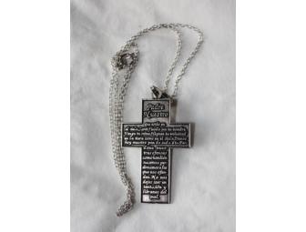 | Padre Nuestro sterling silver cross engraved with the "our Father" prayer in Spanish. Chain included. Handmade gift of the Vatican. |
