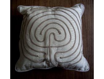 16-inch pillow with classical labyrinth pattern in cream braid sewn on. Stunning!