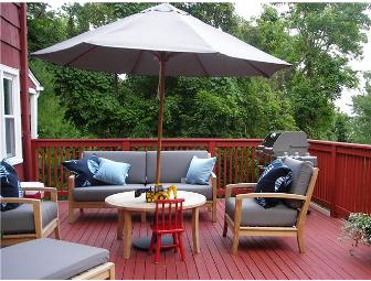 One weekend (Fri- Sun) at a charming secluded country cottage near Nyack, NY, 25 miles from New York City. Our quaint 3 br/3 bath weekend house includes a large deck with a view of the Hudson River, a gas grill, hot tub, and a large backyard. The River Town at Nyack offers excellent dining, antiquing, shopping and hiking. Also includes $100 gift certificate for dinner at Nyack's historic Hudson House.
