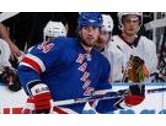 Autographed NHL cap signed by Aaron Voros of the New York Rangers + NHL leather bag and goodies. Aaron Voros plays Left Wing. He is a 6'4" and 28 year old star who wears #34.