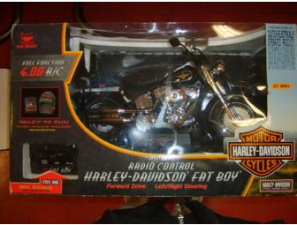 HARLEY DAVIDSON® FAT BOY®. This radio controlled, full function motorcycle features foward drive, left/right steering and authentic custom Deco w/sounds. Available in two colors: Red or Black. The required "6.0v" rechargeable battery pack, charger and "AA" batteries (included) allow this bike to be "Ready to Run"