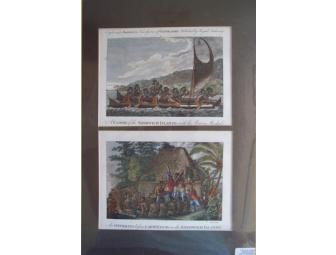 2 Antique, Hand Colored Engravings of Hawaiian Scenes