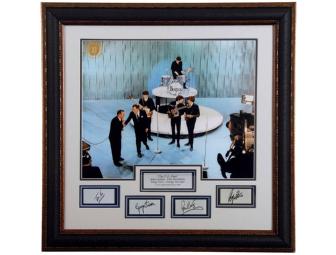 When The Beatles made their first appearance on The Ed Sullivan Show that February 1964, it was and remains the most important event in the history of rock music. This 16x20 photograph also includes the laser engraved signatures plates of the each member of this historic band. The photograph comes professionally framed in a museum quality frame. Item Measures 32x32.