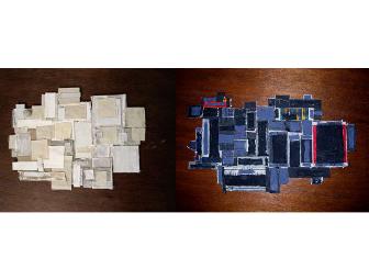 Clothing labels on two linen covered canvas panels, 7.5"x9.5"x.25" each