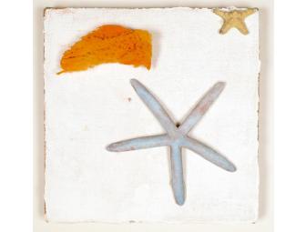 Starfish, sponge, and flashe on jute, 10"x10"1.5"